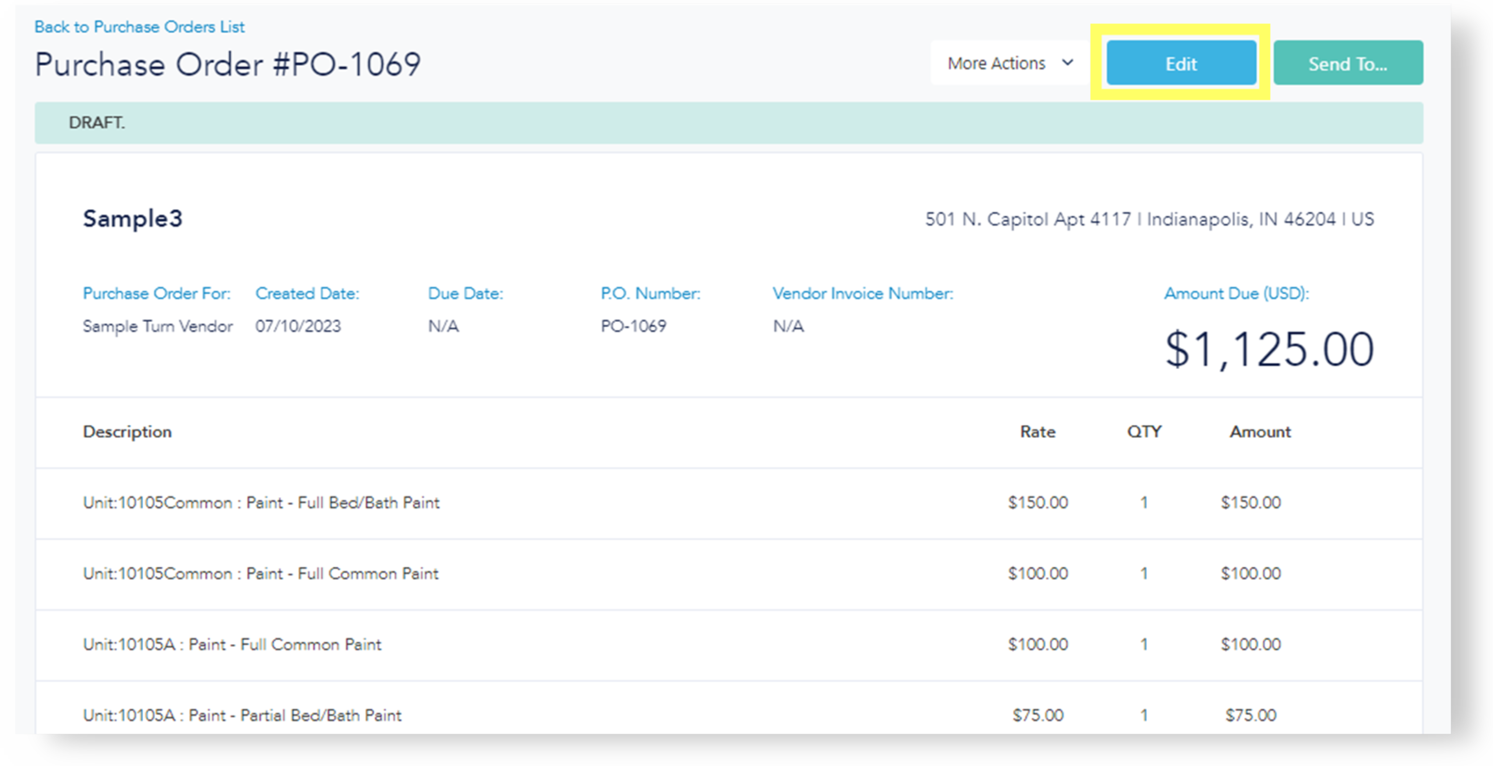 Under "Edit PO," charges can be deleted, if needed. Deleted charges go back to "Not Added" status under "Charges."
