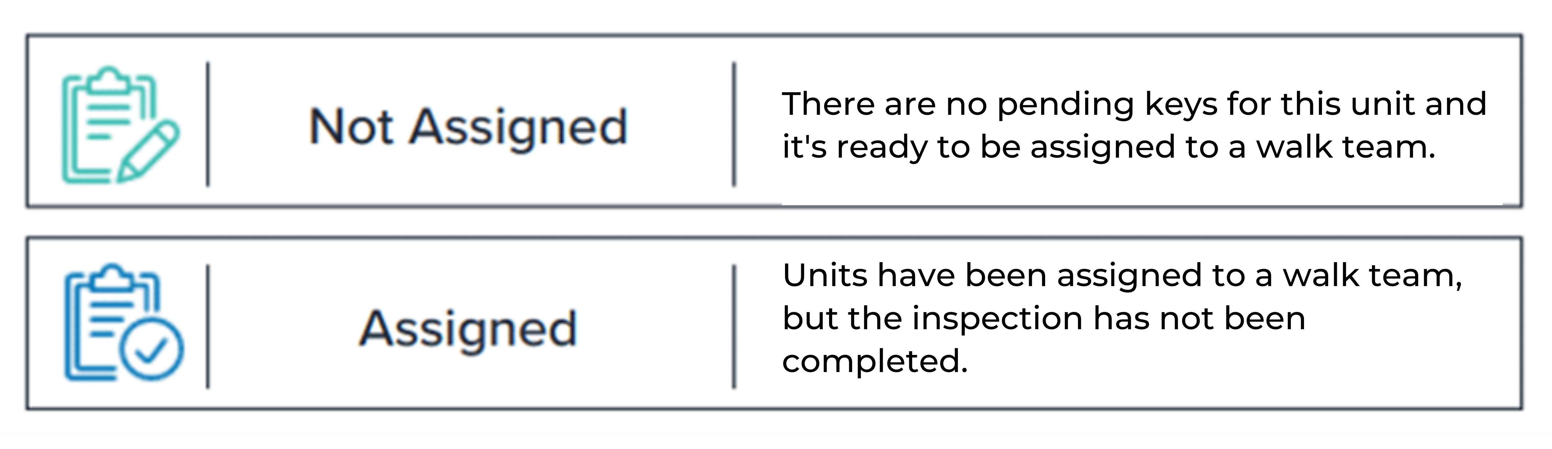 Some site leaders prefer to create daily walk assignments the day before the unit(s) will actually be walked. The "Assigned" status differs from the "In Progress" status. This can be helpful as "Assigned" units have not yet been communicated to walk teams.